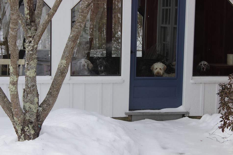 The ups and downs of winter weather make following our established routines challenging, at best. Mostly, I suppose, it’s my problem. I really don’t like winter, the cold temperatures, and particularly the lack of sunshine. We have now had about two weeks with grey, overcast skies. Temperatures have gone from single digit numbers to 52 degrees. I will admit that the big snowstorm we had after Christmas that dumped over a foot of snow here in western Massachusetts was beautiful to look at. With the below freezing temps at that time, we didn’t get the rain and ice that usually follows our snowstorms, causing a mess and making travel by car or on foot unsafe. We enjoyed clear roads and a pristinely white snowscape. Beautiful to look at, but so cold that the dogs couldn’t be outside safely for more than 5-10 minutes. I didn’t need to set a timer. They went out to do their business and were back at the door asking to come in well before their time limit.